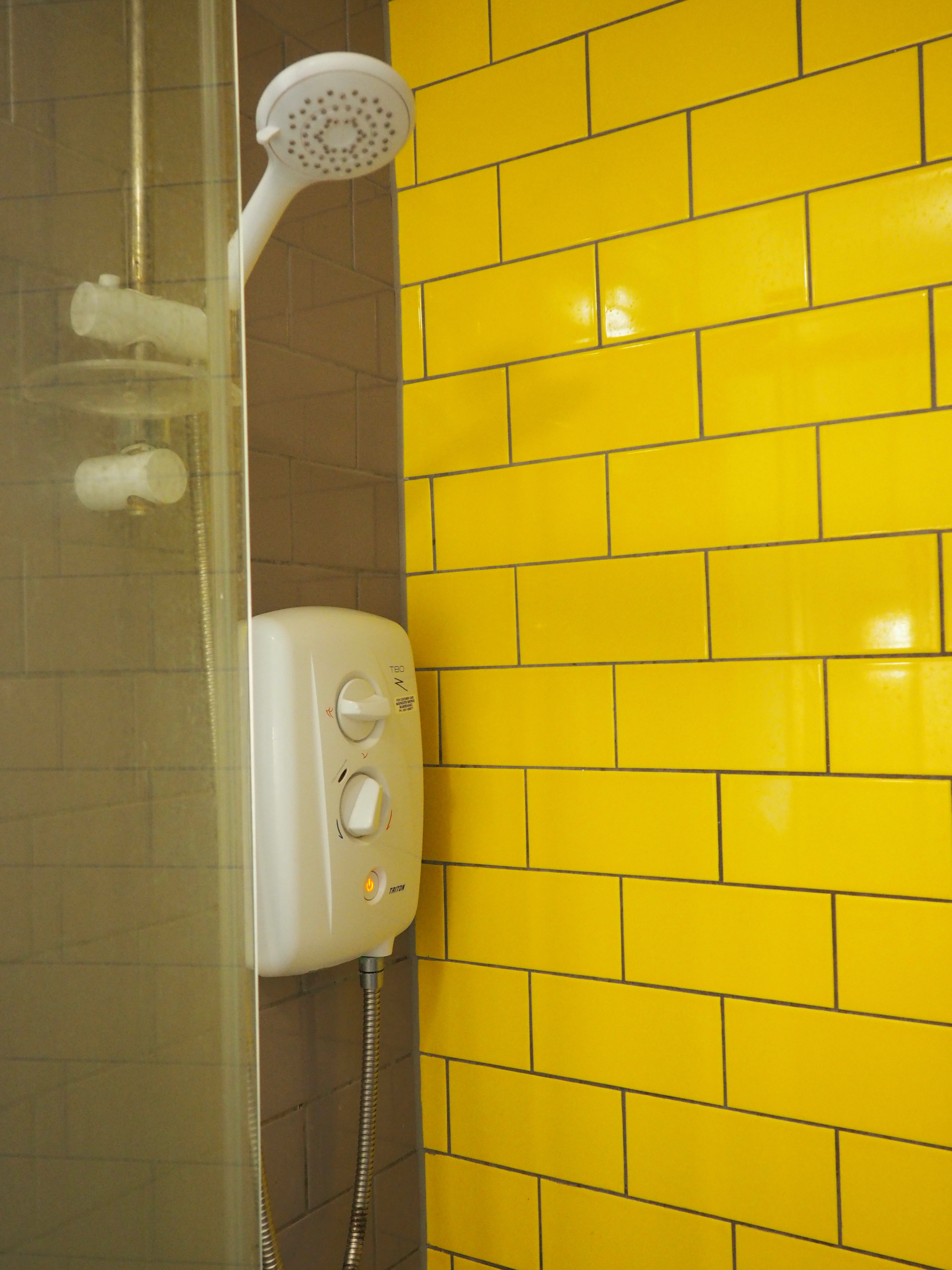 Going up stairs will lead to the bathroom and a hallway to the rooms of the four ladies of the upper level. The bathroom has a toilet, sink, trash bin, two mirrors (one above the toilet and a larger one behind the door), and a shower off to the right. The shower has a knob that can be turned to change the temperature to hot, warm, or cold, and knob to change the water pressure. There is a power button to turn on the water. It will glow orange, meaning there is water to use. If there is no light on, pull the cord that is hanging from the ceiling on the left side of the bathroom and the light will turn on.