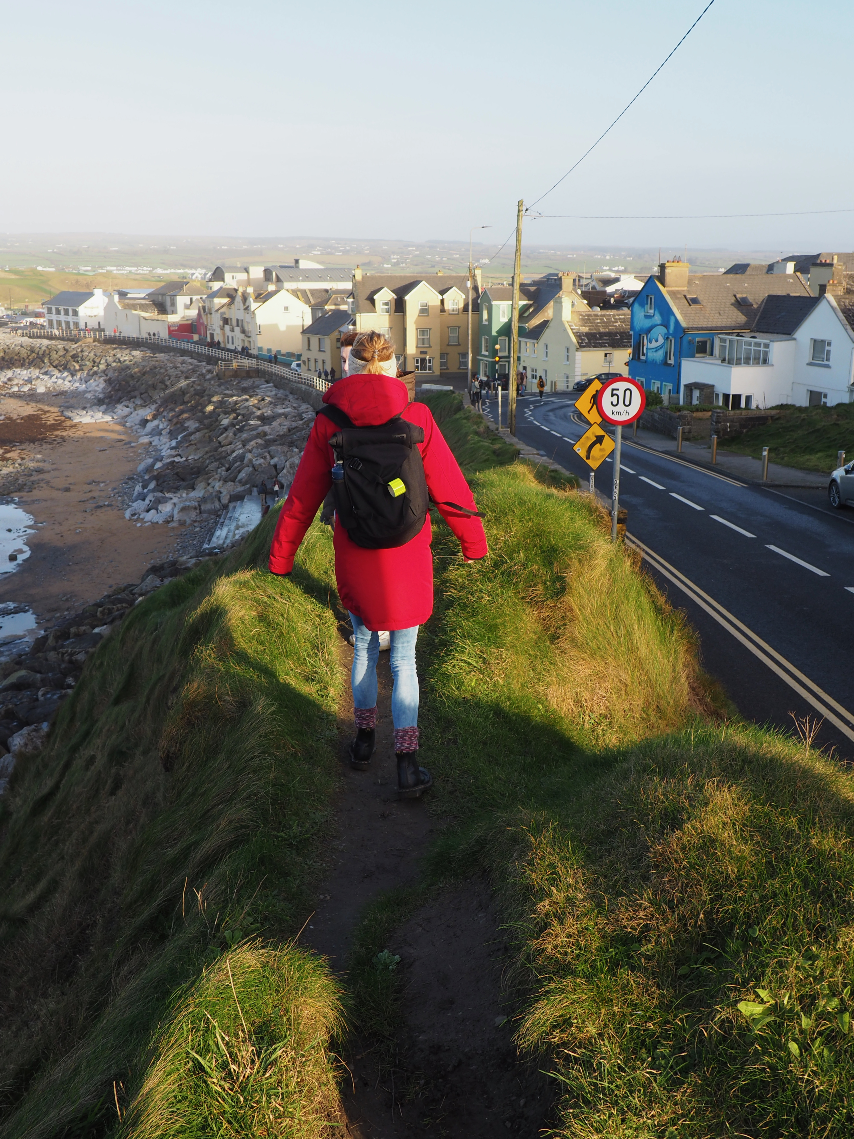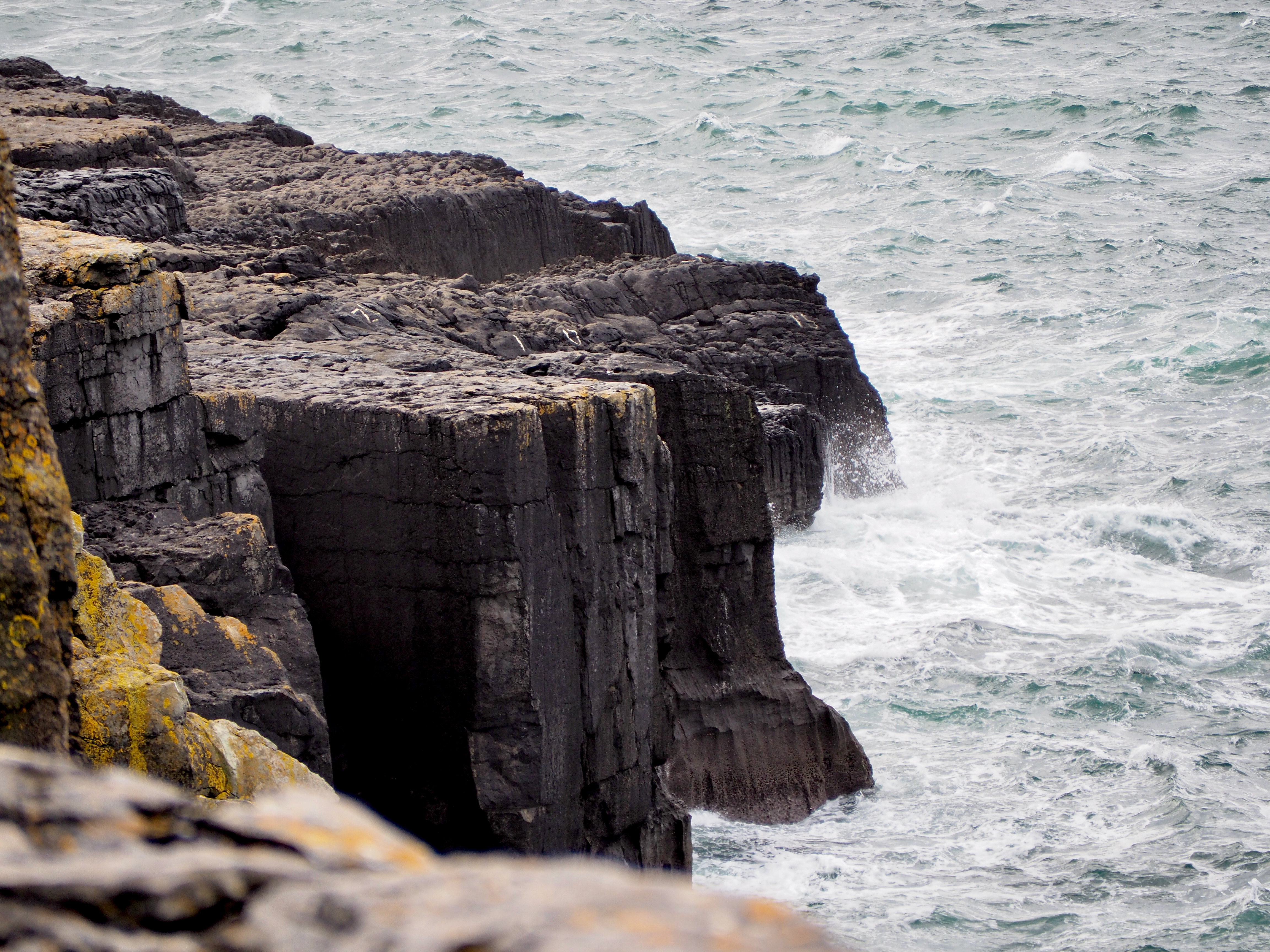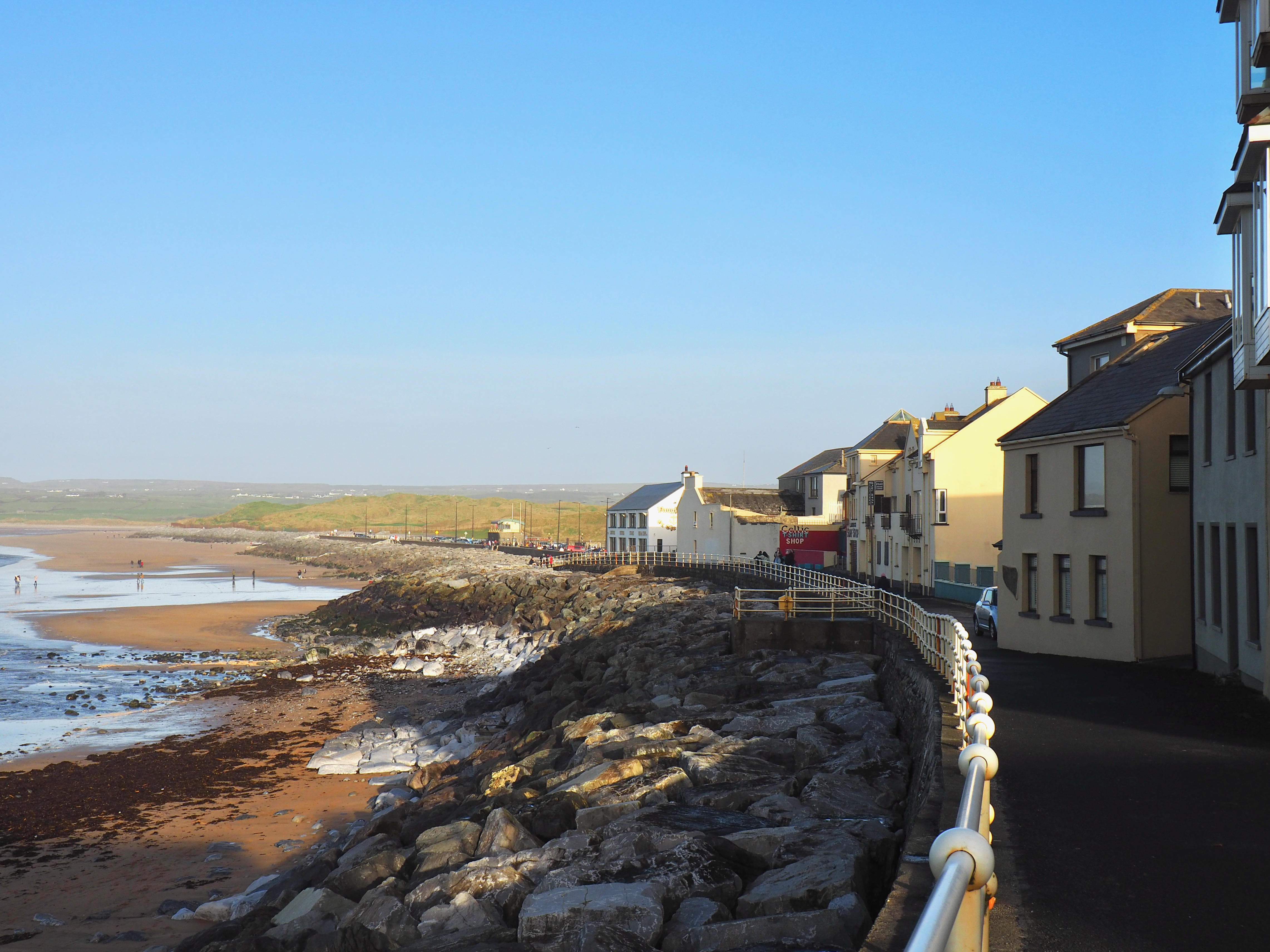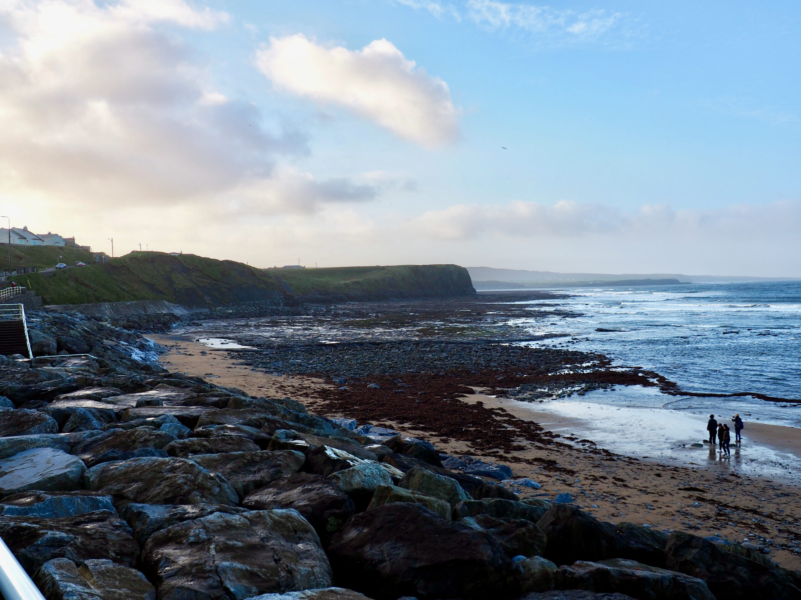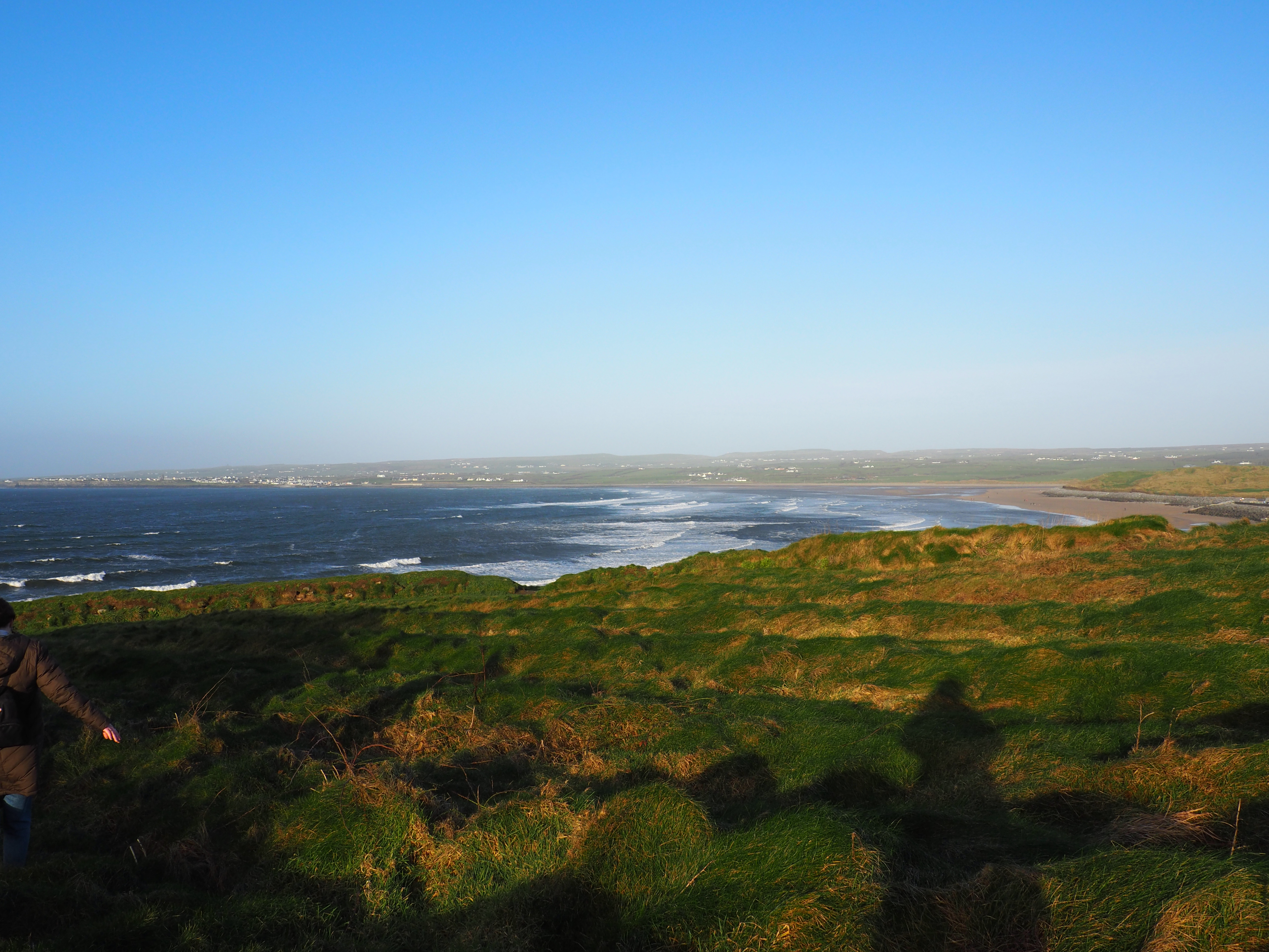 The University of Limerick offers bus trips to different locations around Ireland every weekend. The price for a ticket has been €30. Four or five coach busses line up next to the Foundation Concert Hall Building on campus waiting for students to board as the rain decorates the windshields. Our first stop was Lahinch Beach in Lahinch, Ireland, and by the time we arrived the sun had started to shine. Ireland is home to many rocky shores that I get to learn about in my Ecology class. I was excited to see what we would be talking about and have my first experience seeing the ocean. It was salty, but not as salty as I expected.