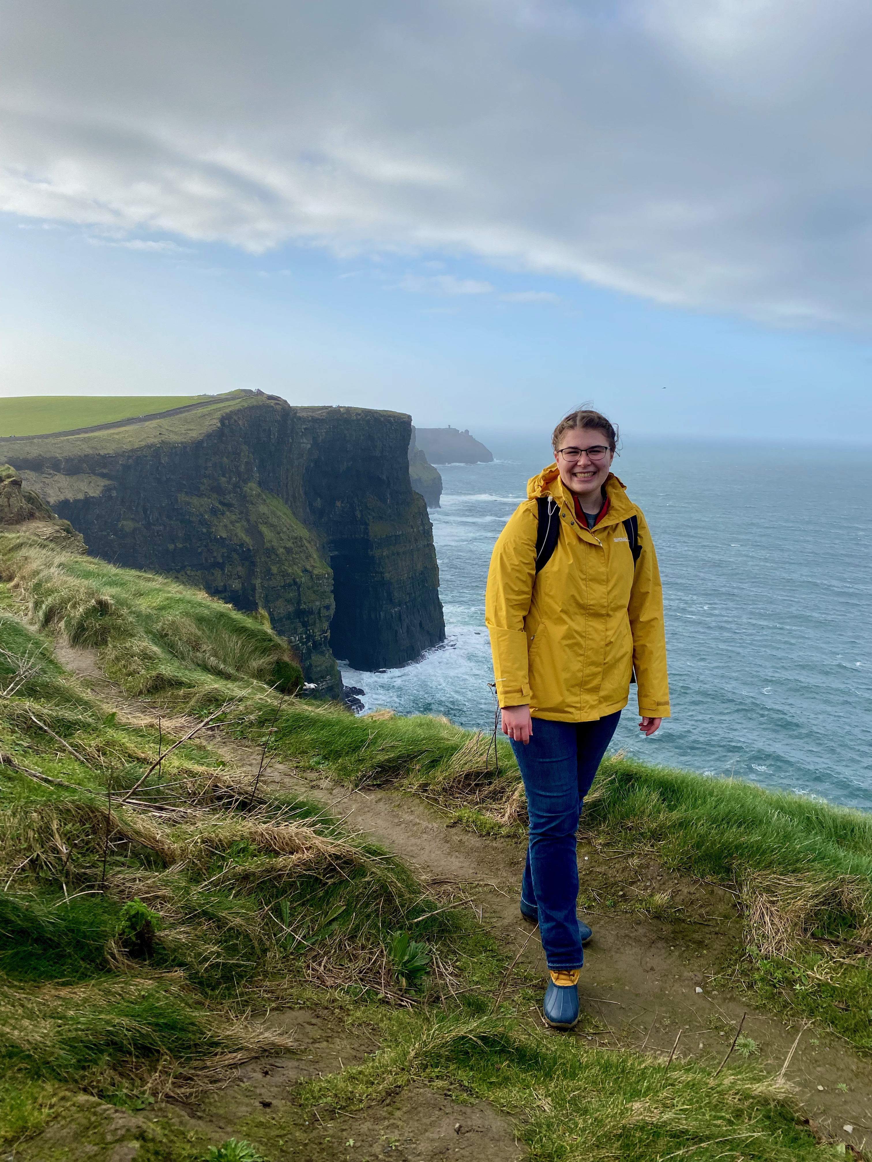 Our next stop was the Cliffs of Moher! When we arrived it was cloudy. Then it rained some. Next, it was incredibly windy. I felt like a kite that was going to be taken away with a gust. Finally the sun came out. The cliffs were really beautiful. It was fun to walk around and take in the experience.